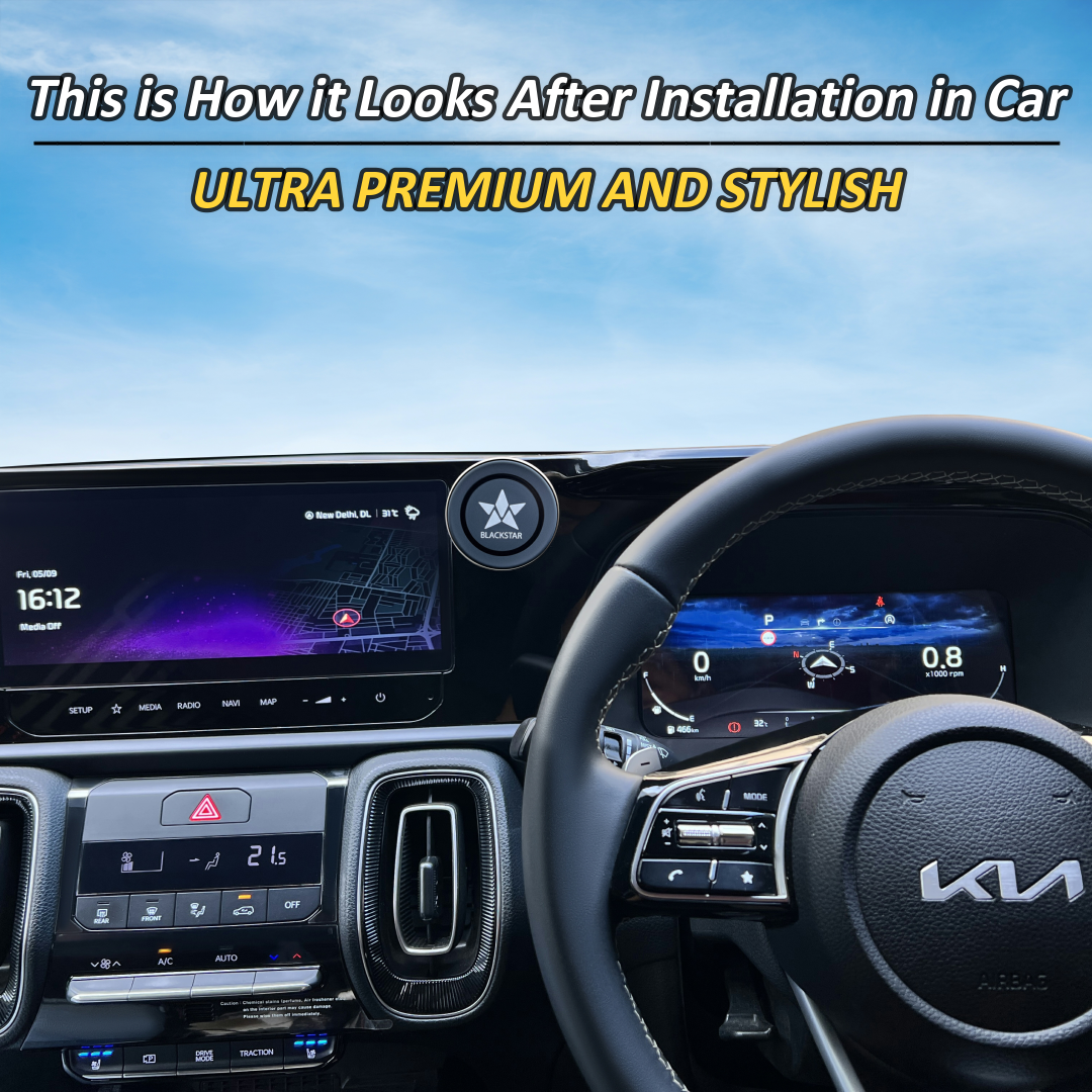 2025 Latest Launched Blackstar MagSafe Compatible Magnetic Mobile Holder . Stick on Car's Dashboard and Hold your iPhone with MagSafe Magnets or Paste Metal Ring on Cover of Non-iPhones or Android Mobiles and then use on this Magnetic Mobile Holder . Experience Latest Blackstar Mobile Holder . Come with 540° Angle Rotation and Super Stylish Spherical Design . Super Strong Magnetic Power which Never Lets Mobile Fall Ever . Comes with 1 Year Warranty